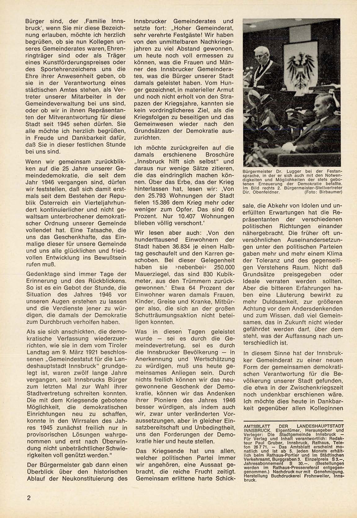 Für V e r l a g und Inhalt verantwortlich: R e d a k teur Paul G r u b e r , Innsbruck, Rathaus, T e l e fon 26 7 71. — Das Amtsblatt erscheint m o natlich und ist a b 5. j e d e n M o n a t s erhältlich b e i m R a t h a u s - P o r t i e r u n d im Städtischen