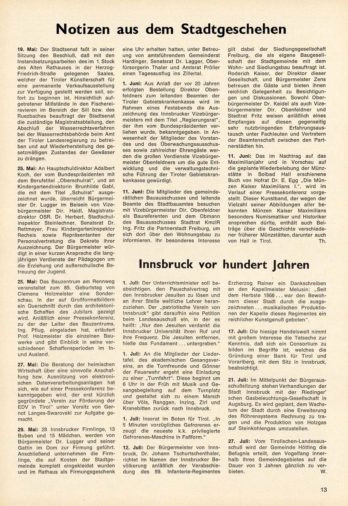 27. Juli: V o m T i r o l i s c h e n - L a n d e s a u s schuß w i r d der G e m e i n d e Hötting die