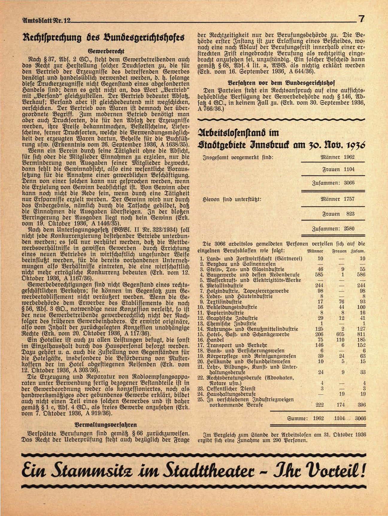 I m Vergleich zum Stande der Arbeitslosen am 31. Oktober 1936