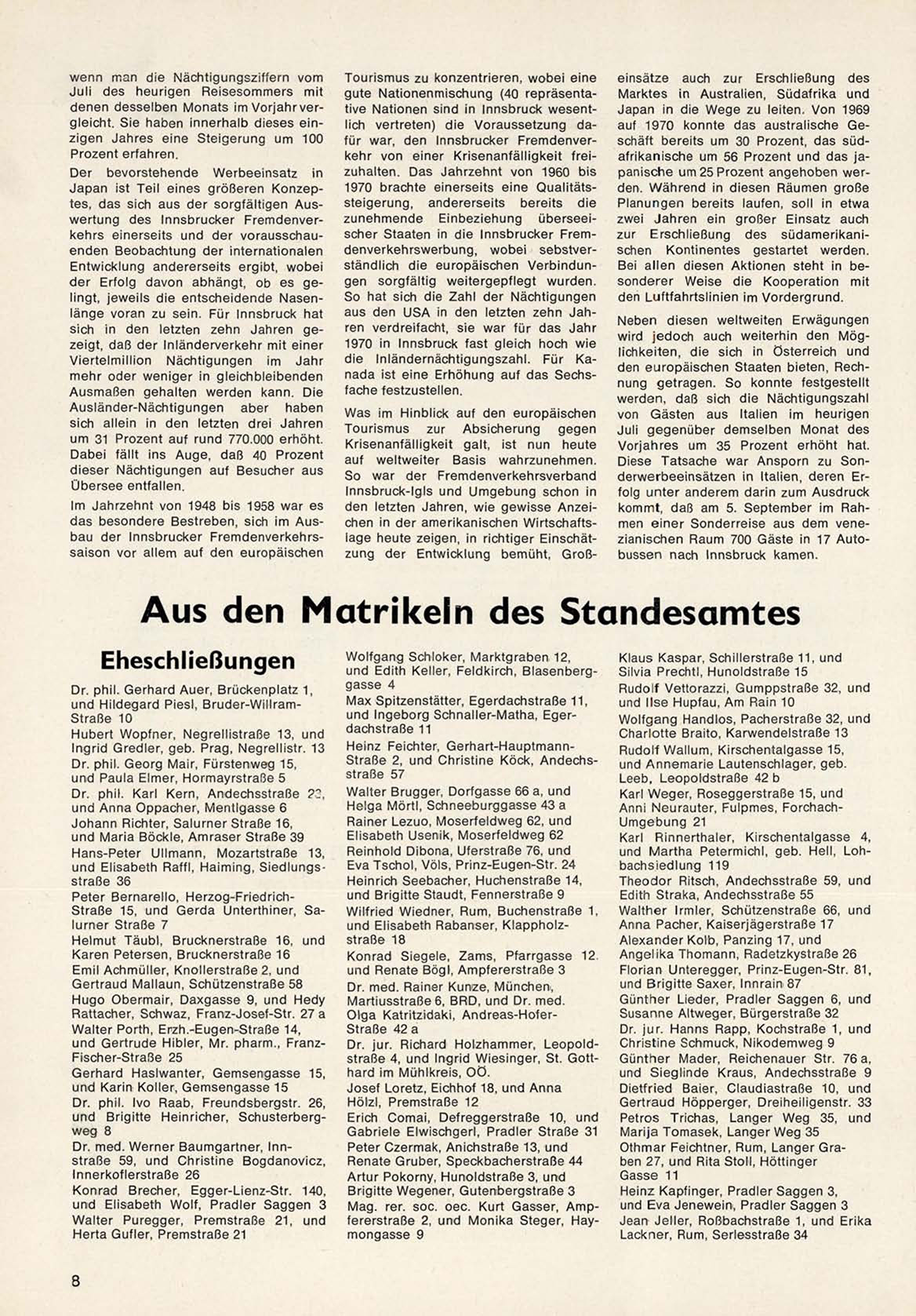 gute N a t i o n e n m i s c h u n g (40 repräsentative Nationen sind in Innsbruck w e s e n t lich vertreten) die V o r a u s s e t z u n g d a für war, den Innsbrucker F r e m d e n v e r kehr von einer Krisenanfälligkeit freiz u h a l t e n . D a s J a h r z e h n t v o n 1960 bis