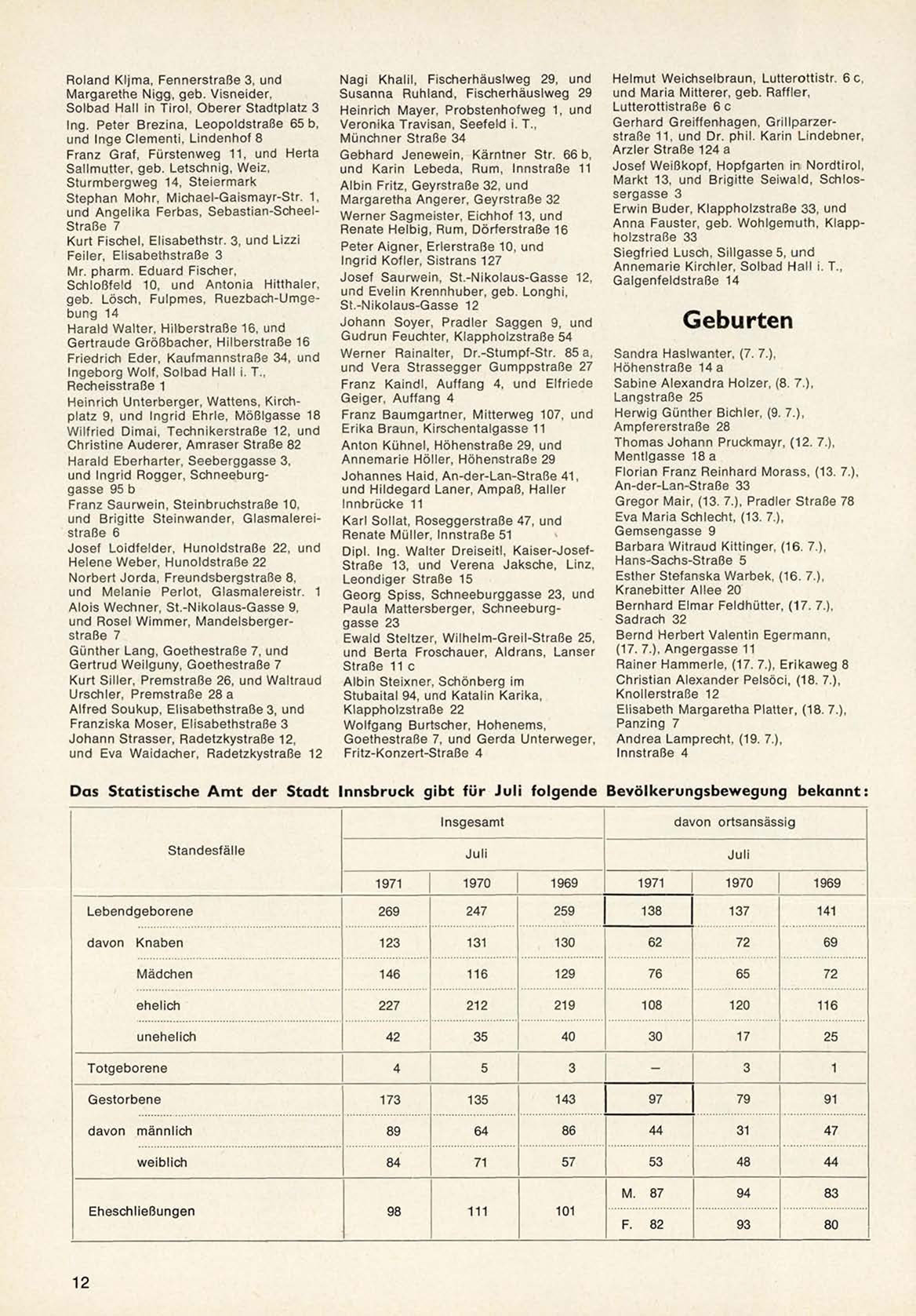 Das Statistische A m t der Stadt Innsbruck gibt für Juli folgende Bevölkerungsbewegung