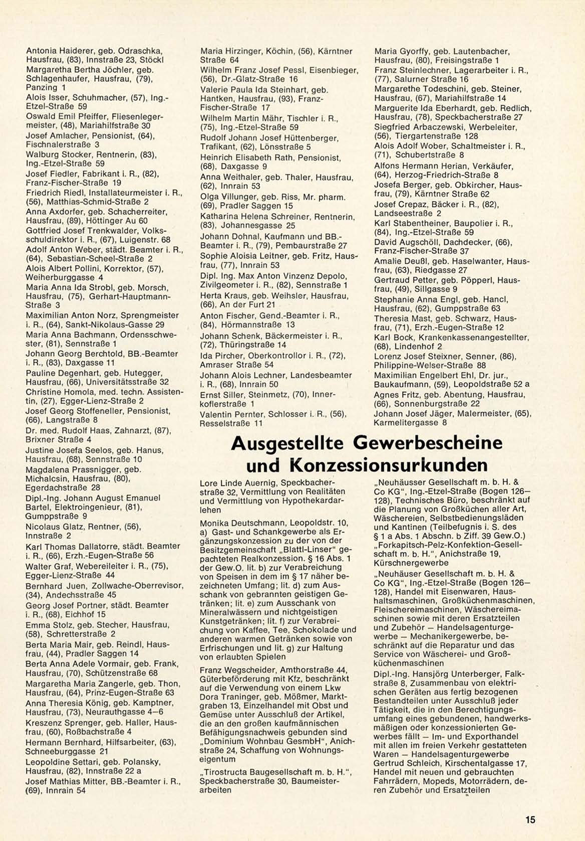 A l o i s Isser, S c h u h m a c h e r , (57), Ing.Etzel-Straße 59
