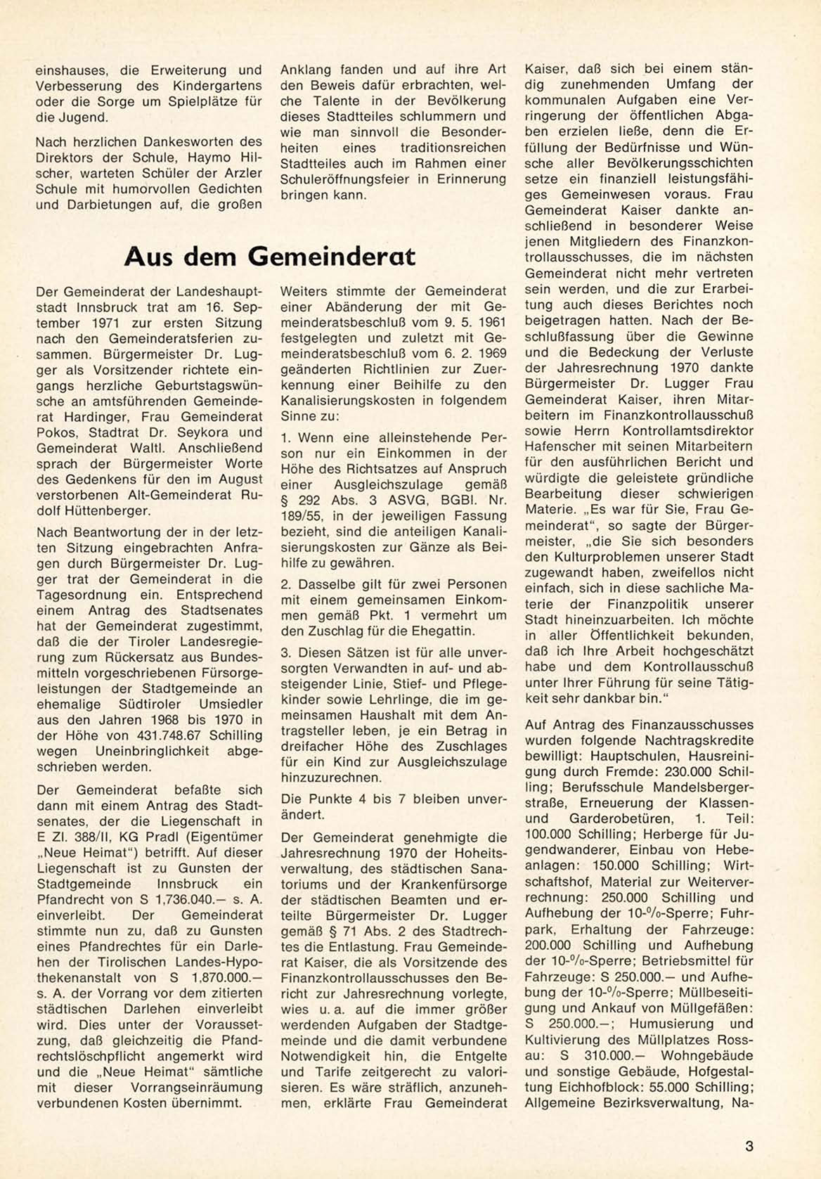 Der Gemeinderat der Landeshauptstadt Innsbruck trat am 16. September 1971 zur ersten Sitzung