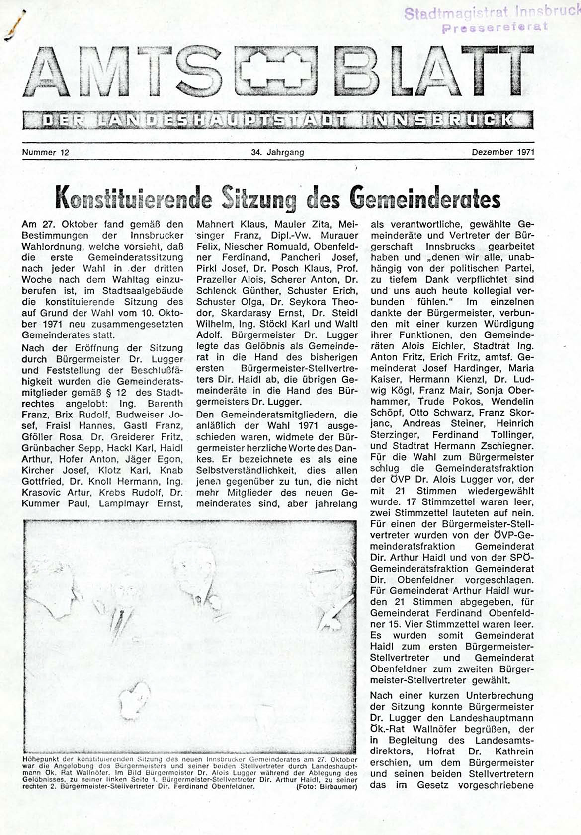 Höhepunkt der k o n s t i t u i e r e n d e n S i t z u n g des neuen Innsbrucker G e m e i n d e r a t e s am 27. O k t o b e r