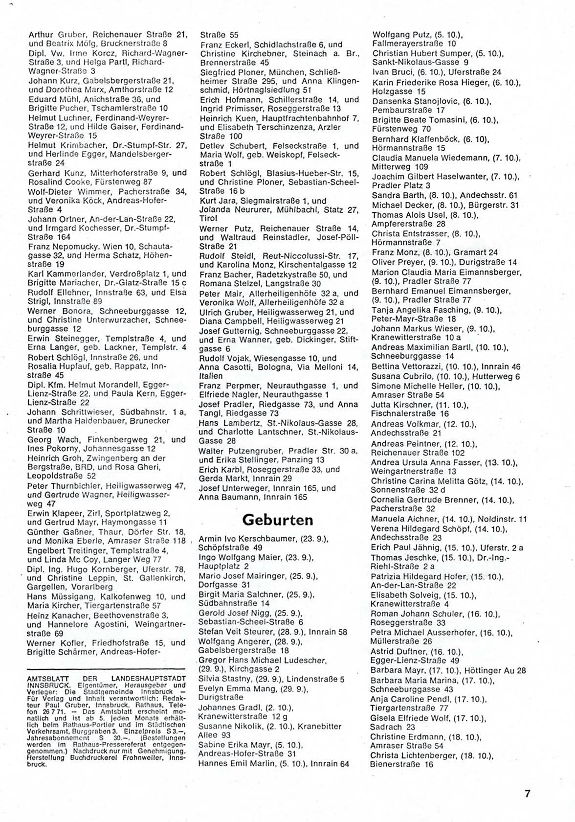 Für V e r l a g und Inhalt verantwortlich: R e d a k tour Paul G r u b e r , Innsbruck, Rathaus, T e l e fon 26 7 71. Das Amtsblatt erscheint m o natlich und ist ab 5. Jeden M o n a t s erhältlich beim R a t h a u s - P o r t l e r und im Städtischen