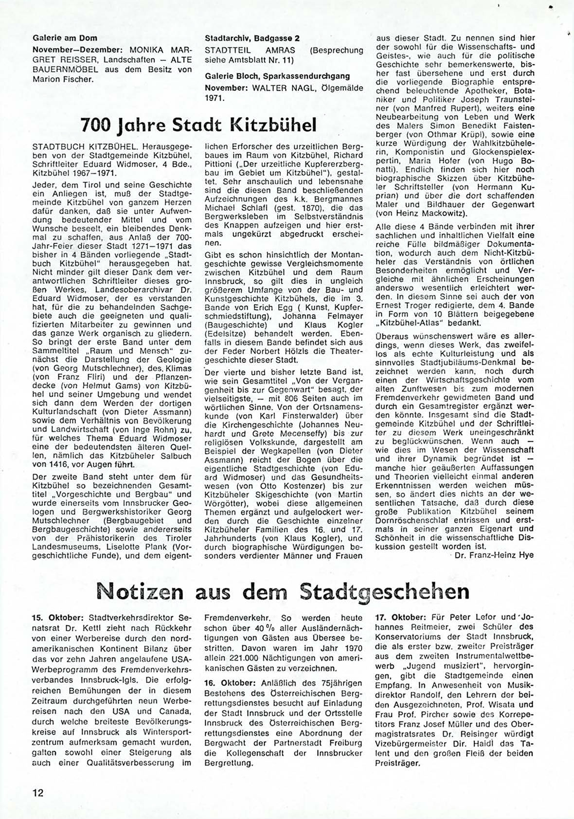 d u r c h ein G e s a m t r e g i s t e r ergänzt w e r d e n k ö n n t e . Insgesamt s i n d die S t a d t g e m e i n d e Kitzbühel und der S c h r i f t l e i ter zu d i e s e m Werk