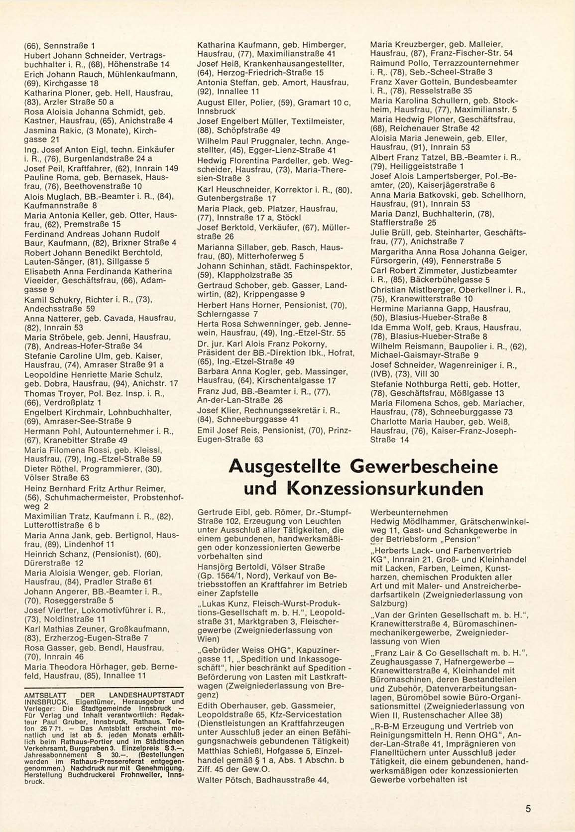 Für V e r l a g und Inhalt verantwortlich: R e d a k teur Paul G r u b e r , Innsbruck, Rathaus. T e l e fon 26 7 71. - Das Amtsblatt erscheint monatlich und ist ab 5. jeden Monats erhältlich beim Rathaus-Portier und im Städtischen