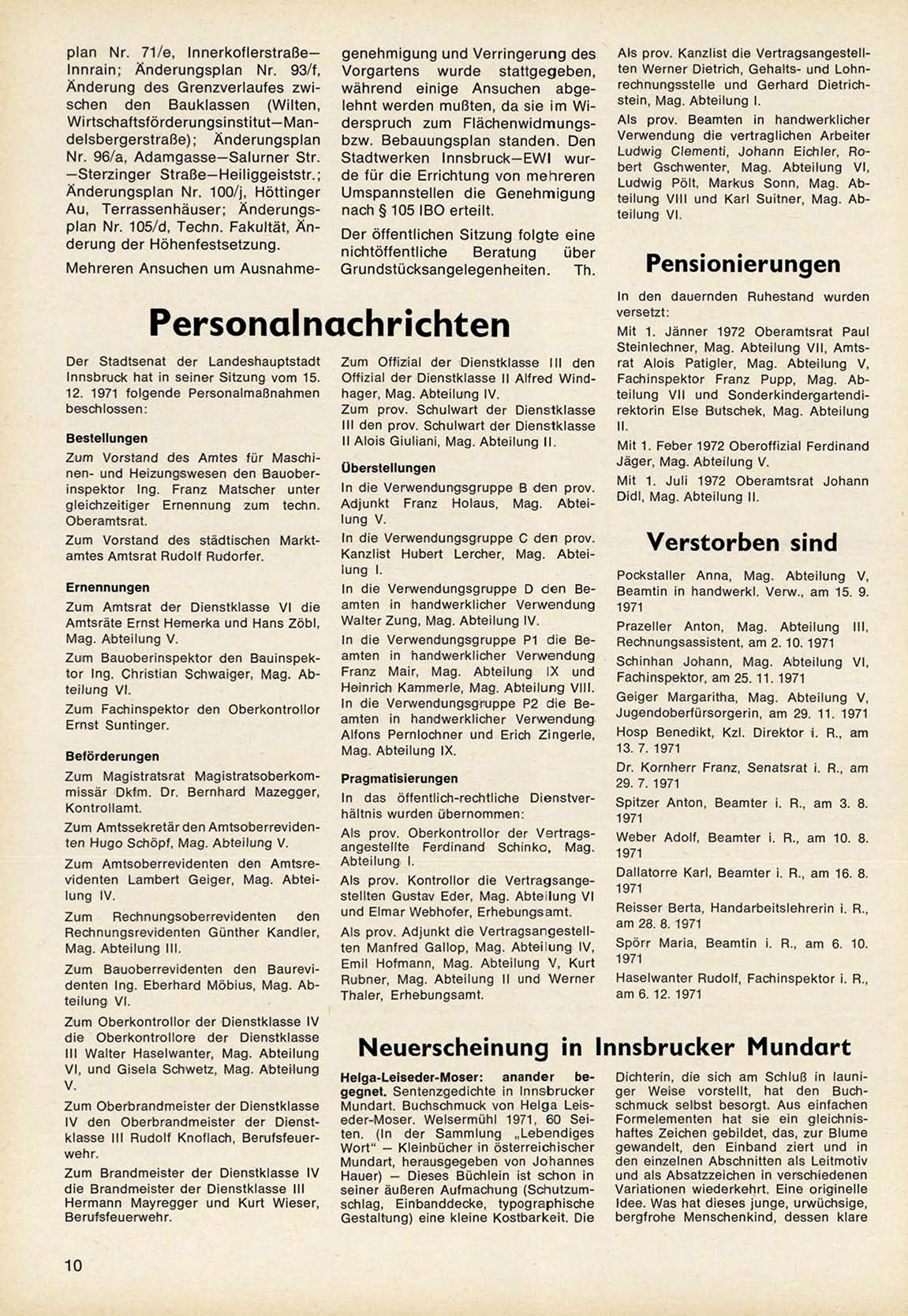 12. 1971 f o l g e n d e P e r s o n a l m a ß n a h m e n