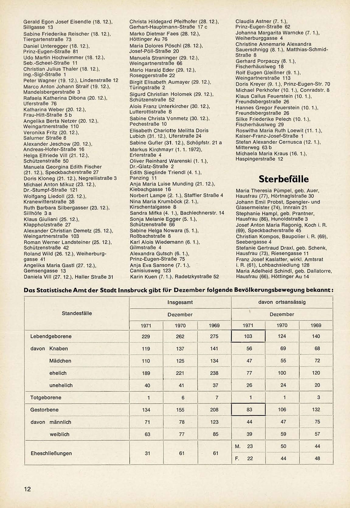 Das Statistische A m t der Stadt Innsbruck gibt für Dezember folgende Bevölkerungsbewegung bekannt:
