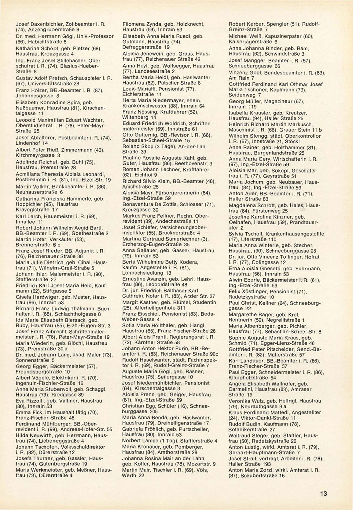 Rudolf Haselwanter, städt. F a c h i n s p e k tor i. R. (69), Rudolf-Greinz-Straße 7
