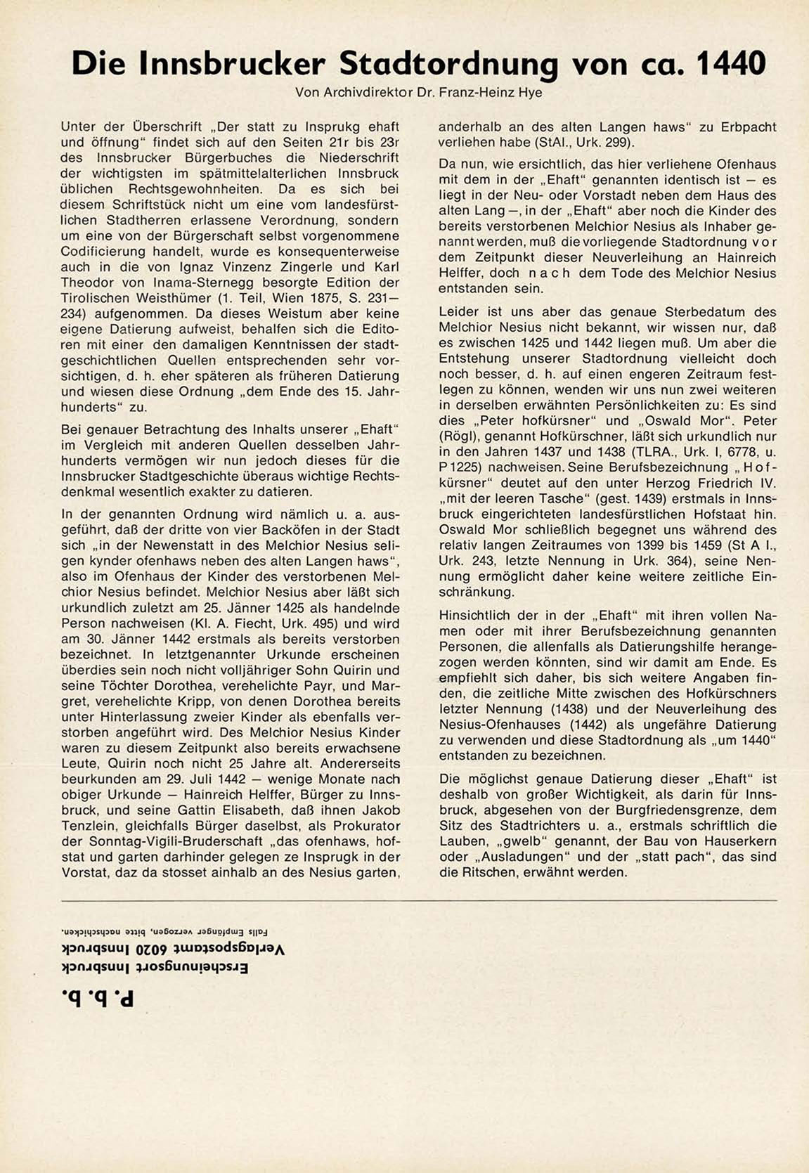 Innsbrucker Stadtgeschichte überaus wichtige Rechtsd e n k m a l wesentlich exakter zu datieren.