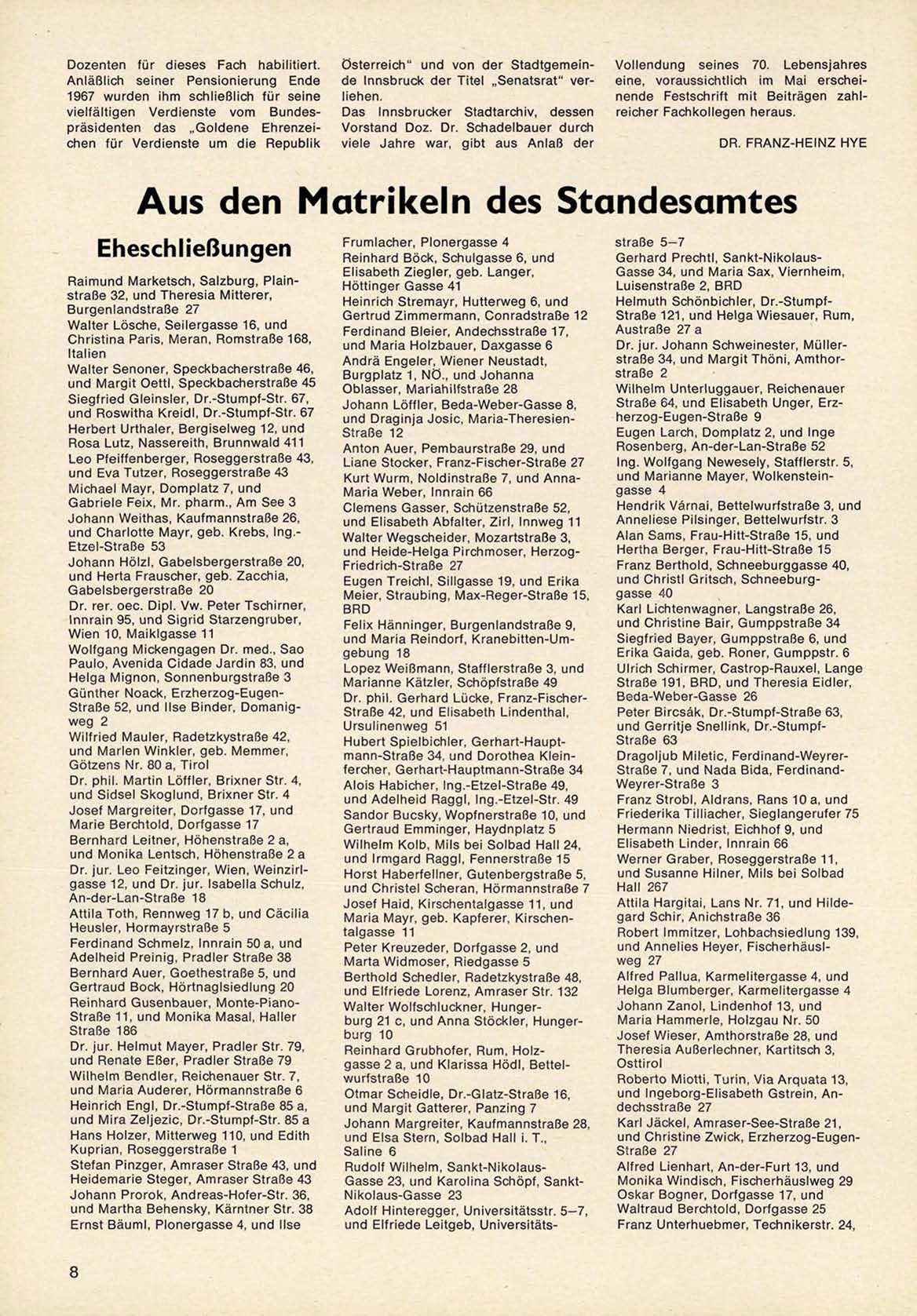 Ö s t e r r e i c h " und von d e r S t a d t g e m e i n de Innsbruck d e r Titel „ S e n a t s r a t " verliehen.