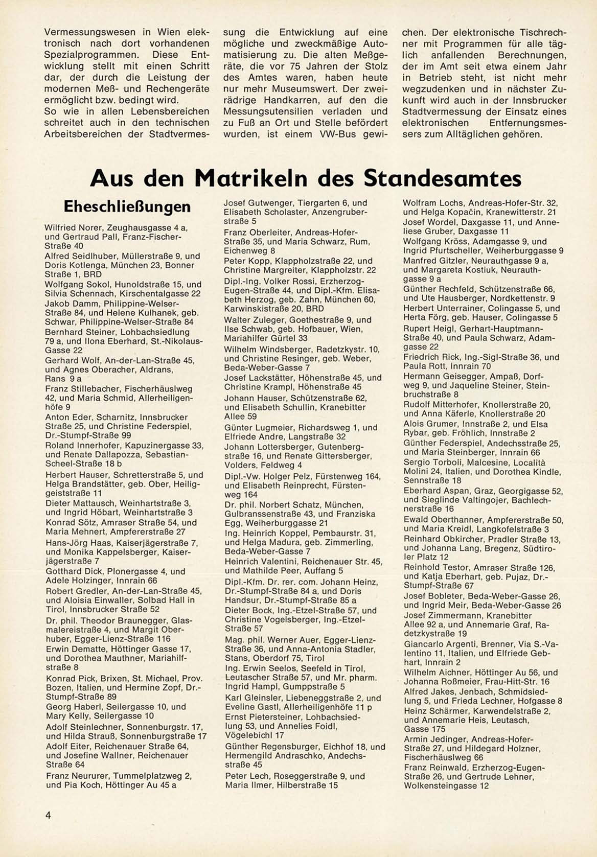 Aus den Matrikeln des Standesamtes