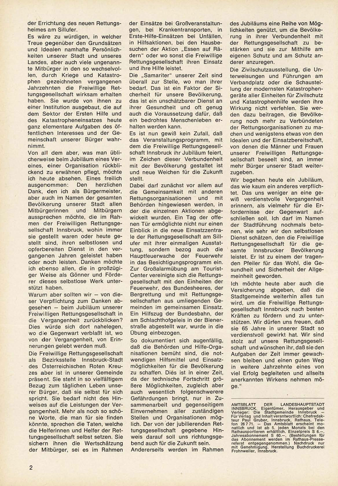 F ü r V e r l a g und Inhalt verantwortlich: C h e f r e d a k teur Paul G r u b e r , Innsbruck, Rathaus, T e l e fon 26 7 71. — Das Amtsblatt erscheint m o natlich und ist ab 5. jeden Monats bei den