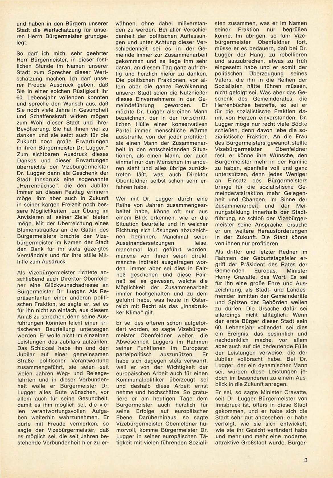 Bürgermeister Dr. Lugger. Als Repräsentanten einer anderen politischen Fraktion, so sagte er, sei es
