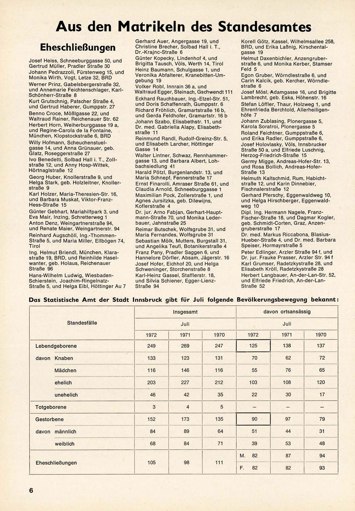 Das Statistische A m t der Stadt Innsbruck gibt für Juli folgende Bevölkerungsbewegung