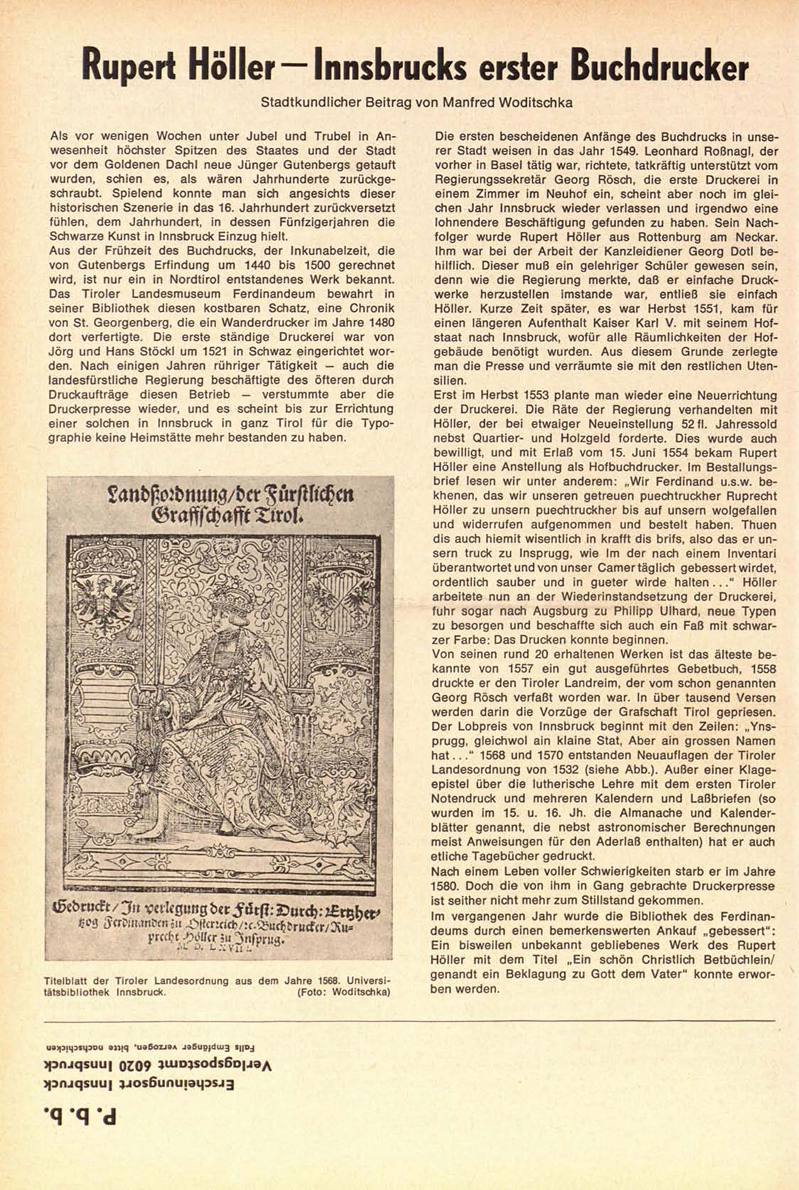 Rupert Höller—Innsbrucks erster Buchdruckei