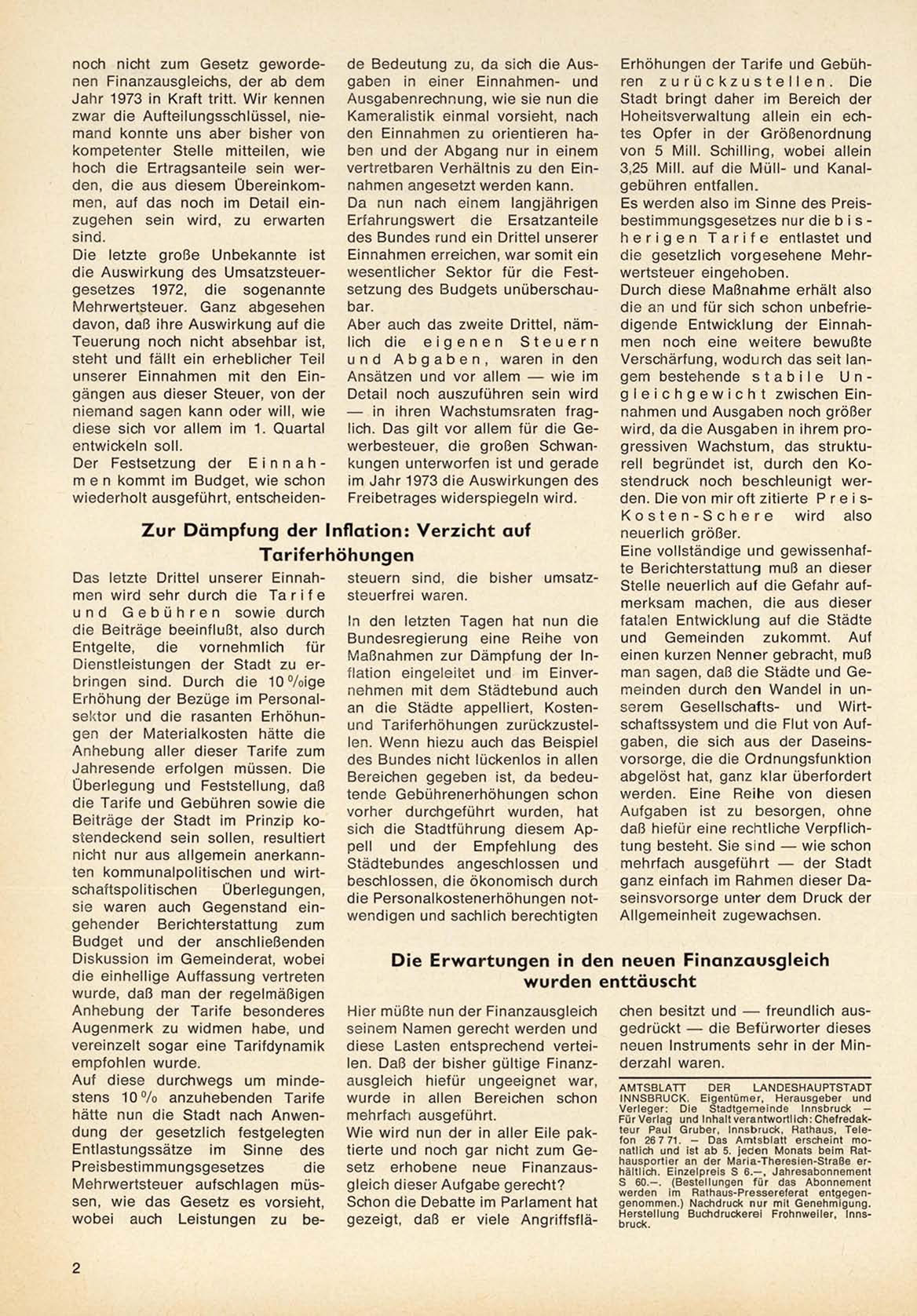 F ü r V e r l a g und Inhalt v e r a n t w o r t l i c h : Chefredakteur Paul G r u b e r , Innsbruck, Rathaus, T e l e fon 26 7 71. — Das A m t s b l a t t erscheint monatlich und ist ab 5. j e d e n Monats beim Rathausportier an der Maria-Theresien-Straße erhältlich. E i n z e l p r e i s S 6.— , J a h r e s a b o n n e m e n t