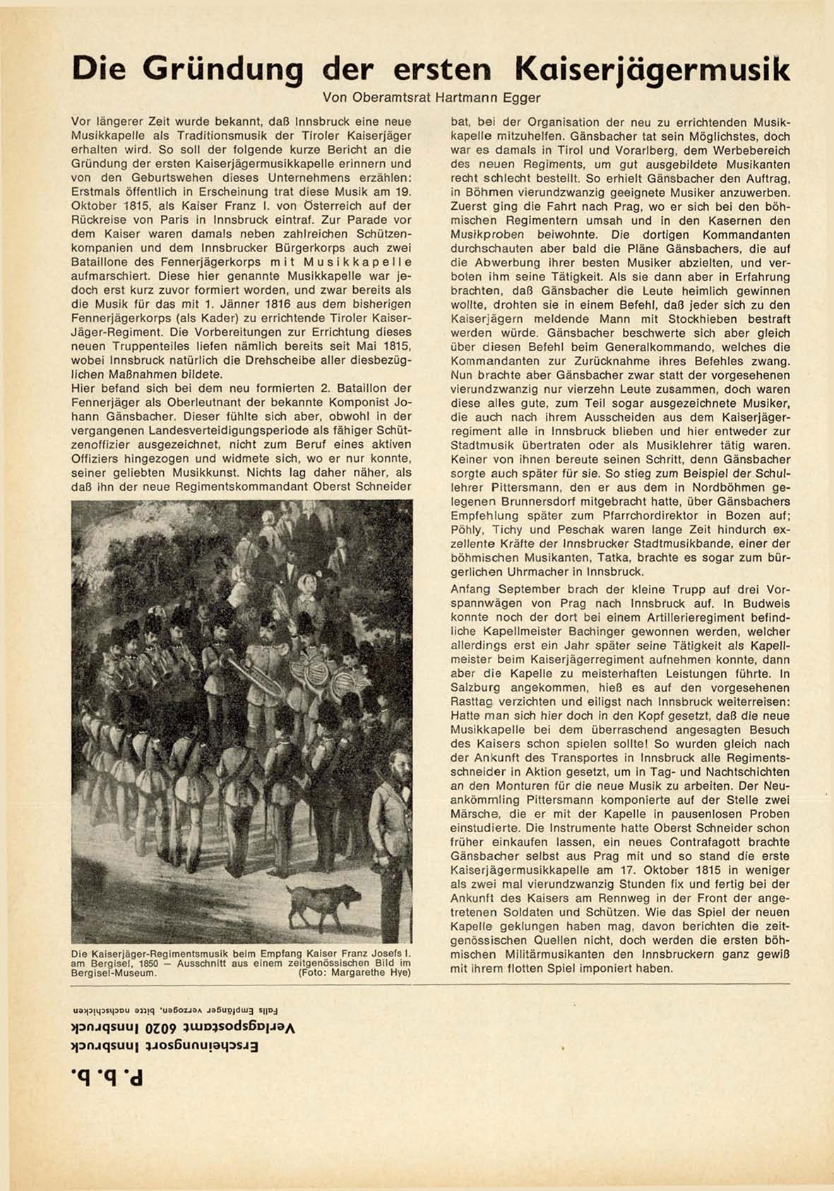 G r ü n d u n g d e r ersten K a i s e r j ä g e r m u s i k k a p e l l e erinner n u n d