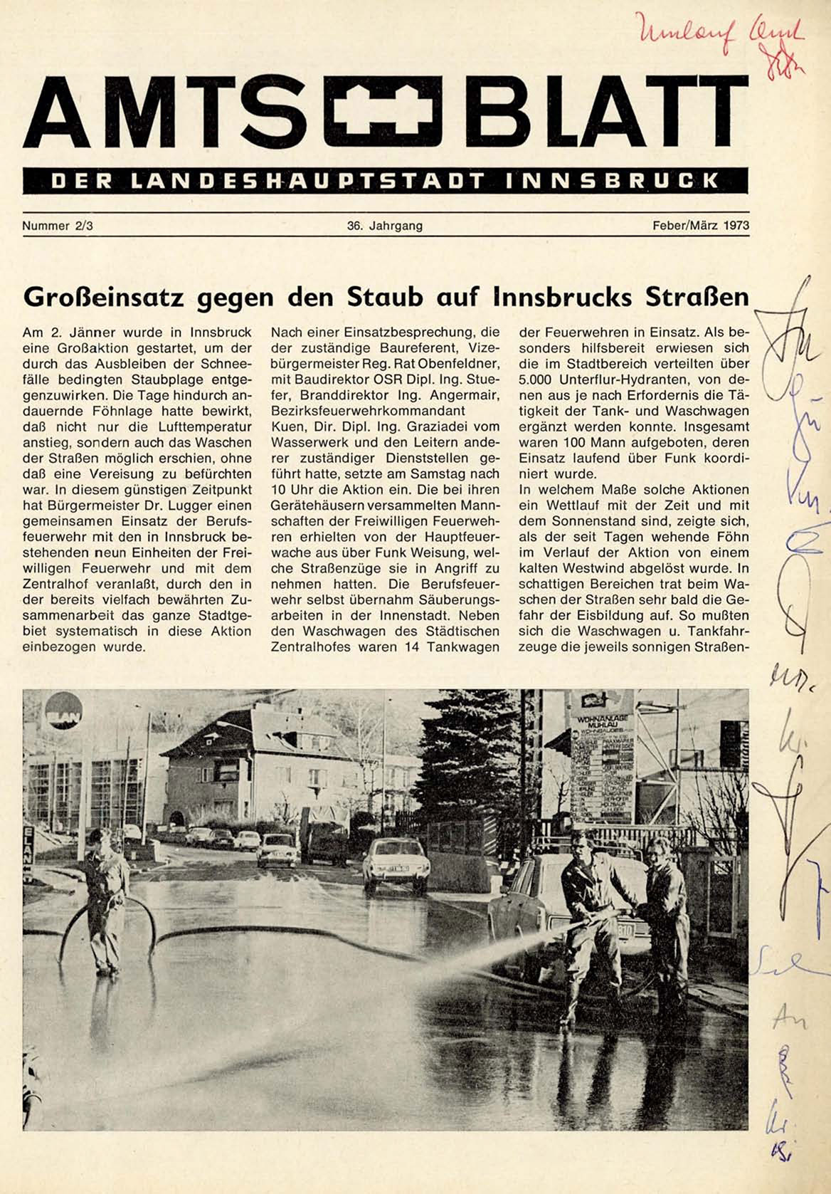 g e m e i n s a m e n E i n s a t z der B e r u f s feuerwehr mit den in Innsbruck bes t e h e n d e n n e u n Einheiten der F r e i willigen F e u e r w e h r und mit dem