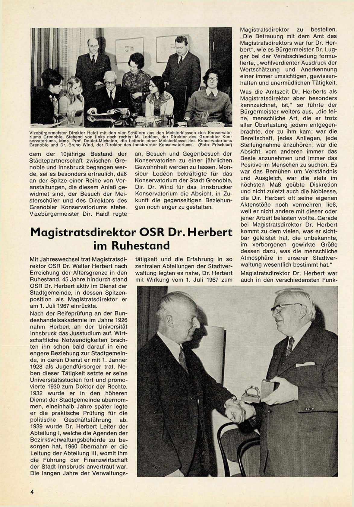 Magistratsdirektors war für Dr. Herbert", wie es Bürgermeister Dr. L u g ger bei der V e r a b s c h i e d u n g f o r m u lierte, „ w o h l v e r d i e n t e r A u s d r u c k der