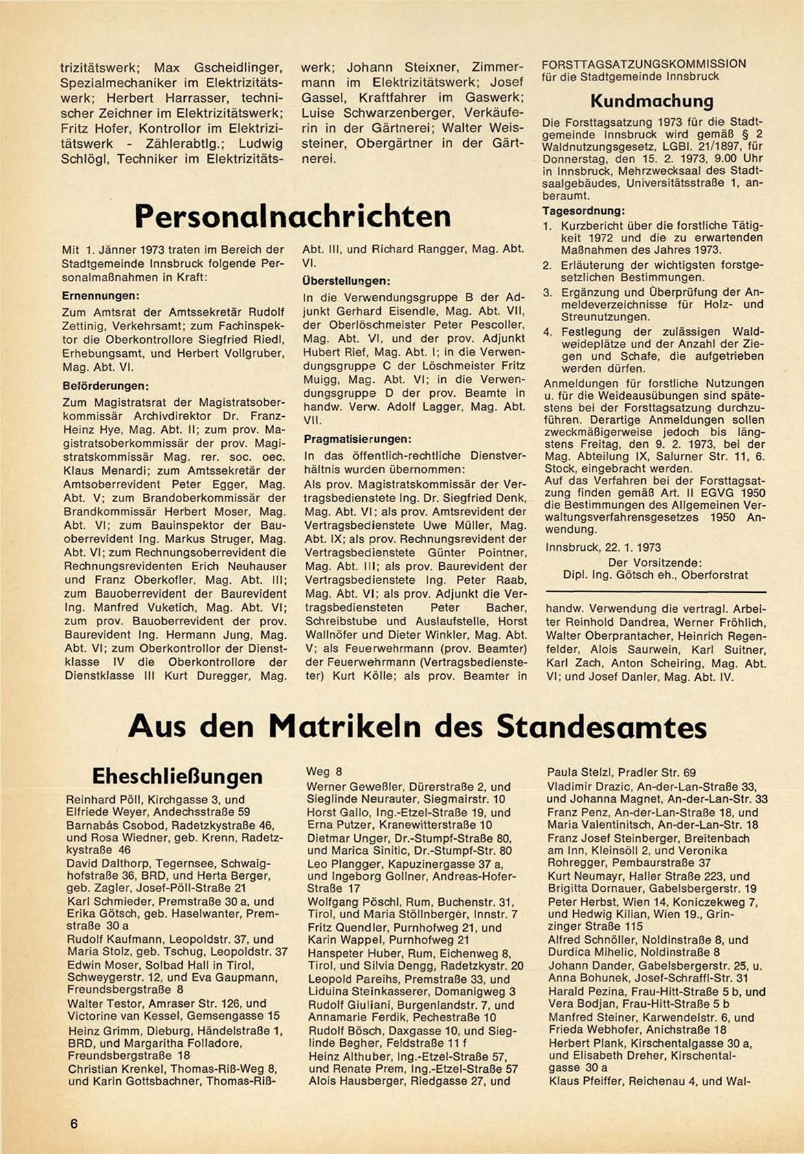 S t a d t g e m e i n d e Innsbruck f o l g e n d e P e r s o n a l m a ß n a h m e n in Kraft: