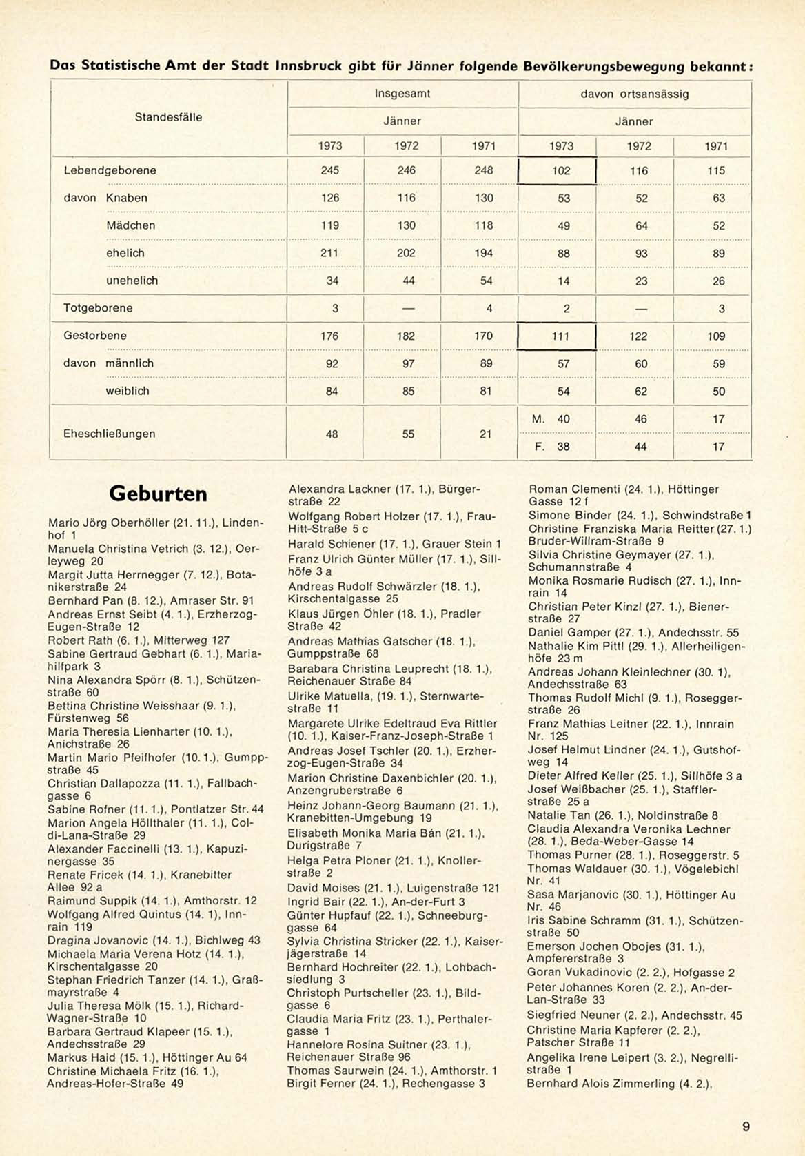 Das Statistische A m t der Stadt Innsbruck gibt für Jänner folgende Bevölkerungsbewegung bekannt: