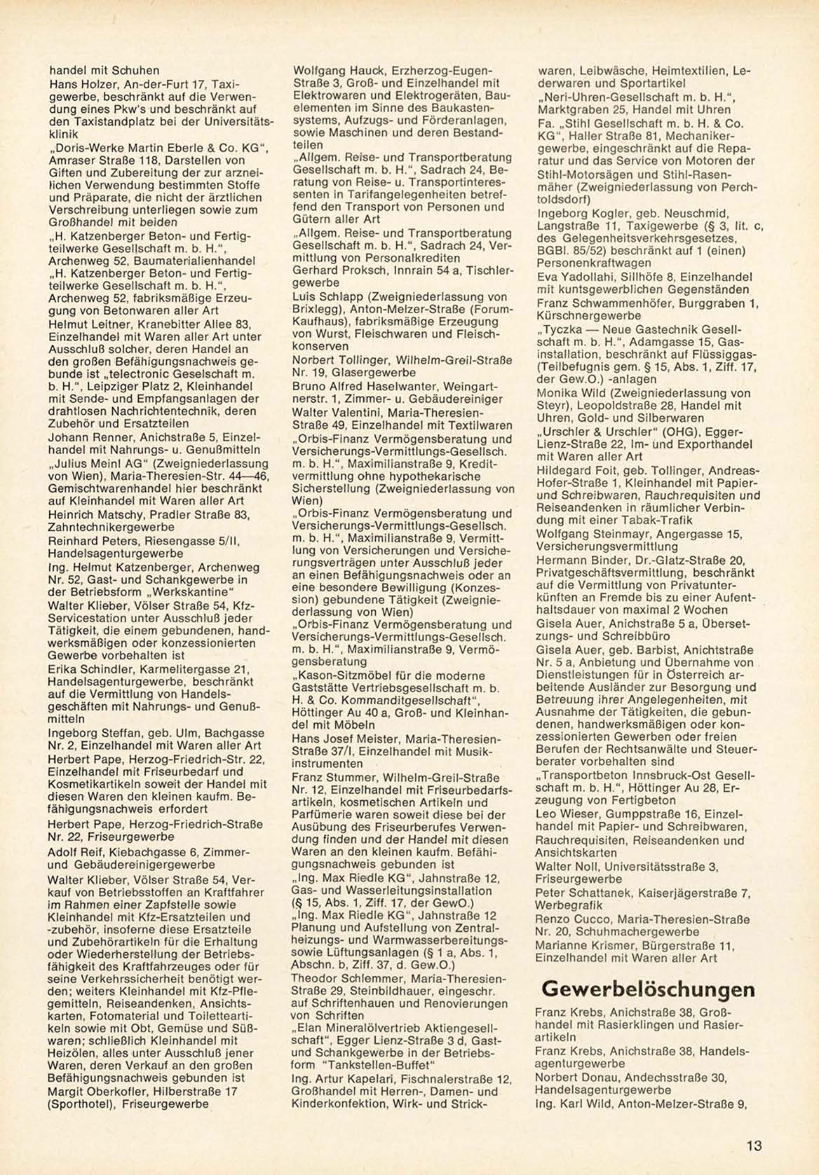 „Tyczka — Neue Gastechnik Gesellschaft m. b. H . " , A d a m g a s s e 15, G a s installation, beschränkt auf F l ü s s i g g a s (Teilbefugnis g e m . § 15, A b s . 1, Ziff. 17,