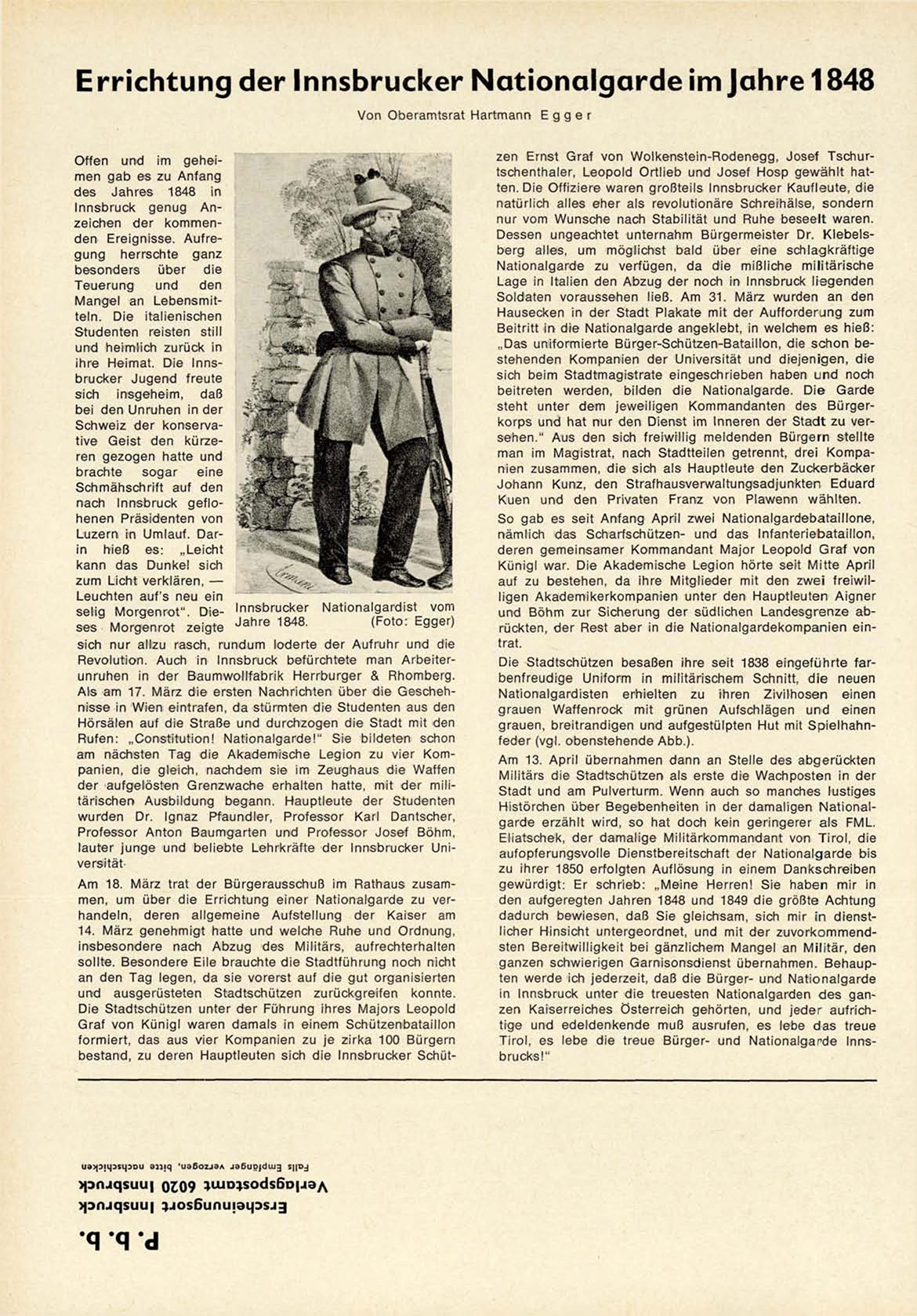 lauter j u n g e und beliebte Lehrkräfte d e r Innsbrucker U n i versitätArn 18. März trat der Bürgerausschuß im R a t h a u s z u s a m m e n , um über die E r r i c h t u n g e i n e r N a t i o n a l g a r d e z u verh a n d e l n , deren a l l g e m e i n e A u f s t e l l u n g d e r K a i s e r am