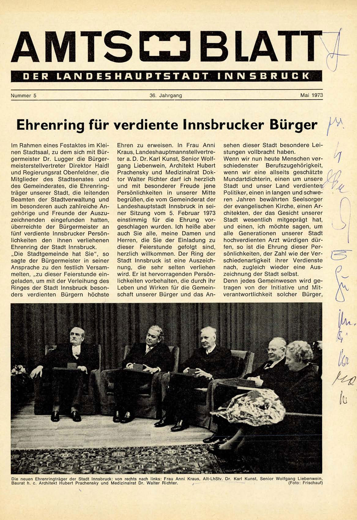 Landeshauptstadt Innsbruck in s e i ner Sitzung v o m 5. F e b r u a r 1973