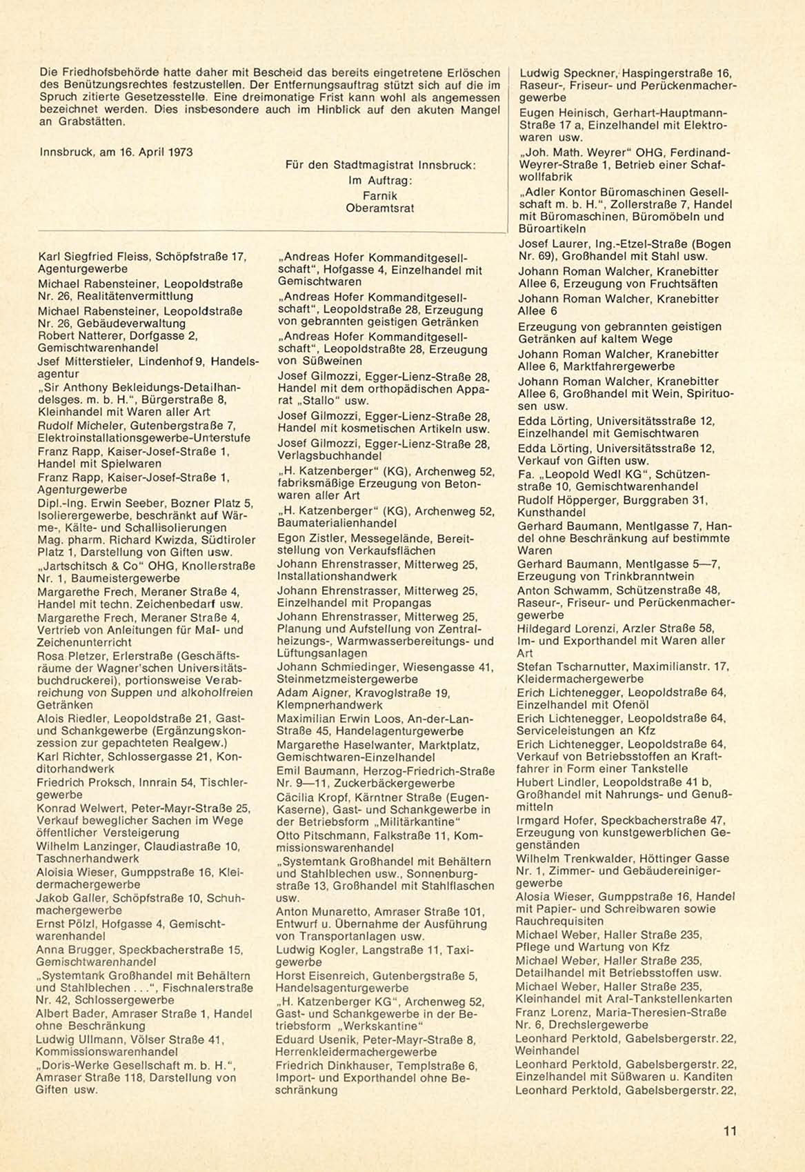 Innsbruck, am 16. A p r i l 1973