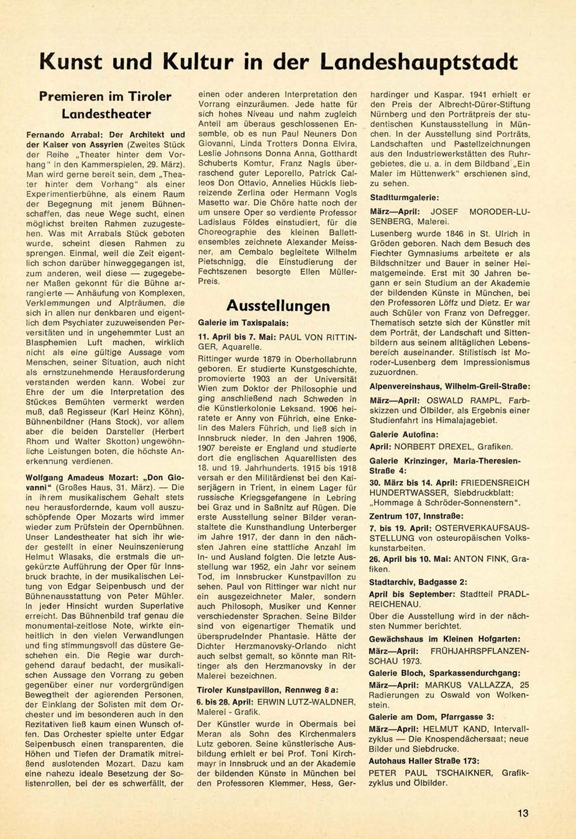 Lutz g e b o r e n . S e i n e künstlerische A u s bildung erhielt er bei Prof. T o n i K i r c h mayr in Innsbruck und an d e r A k a d e m i e