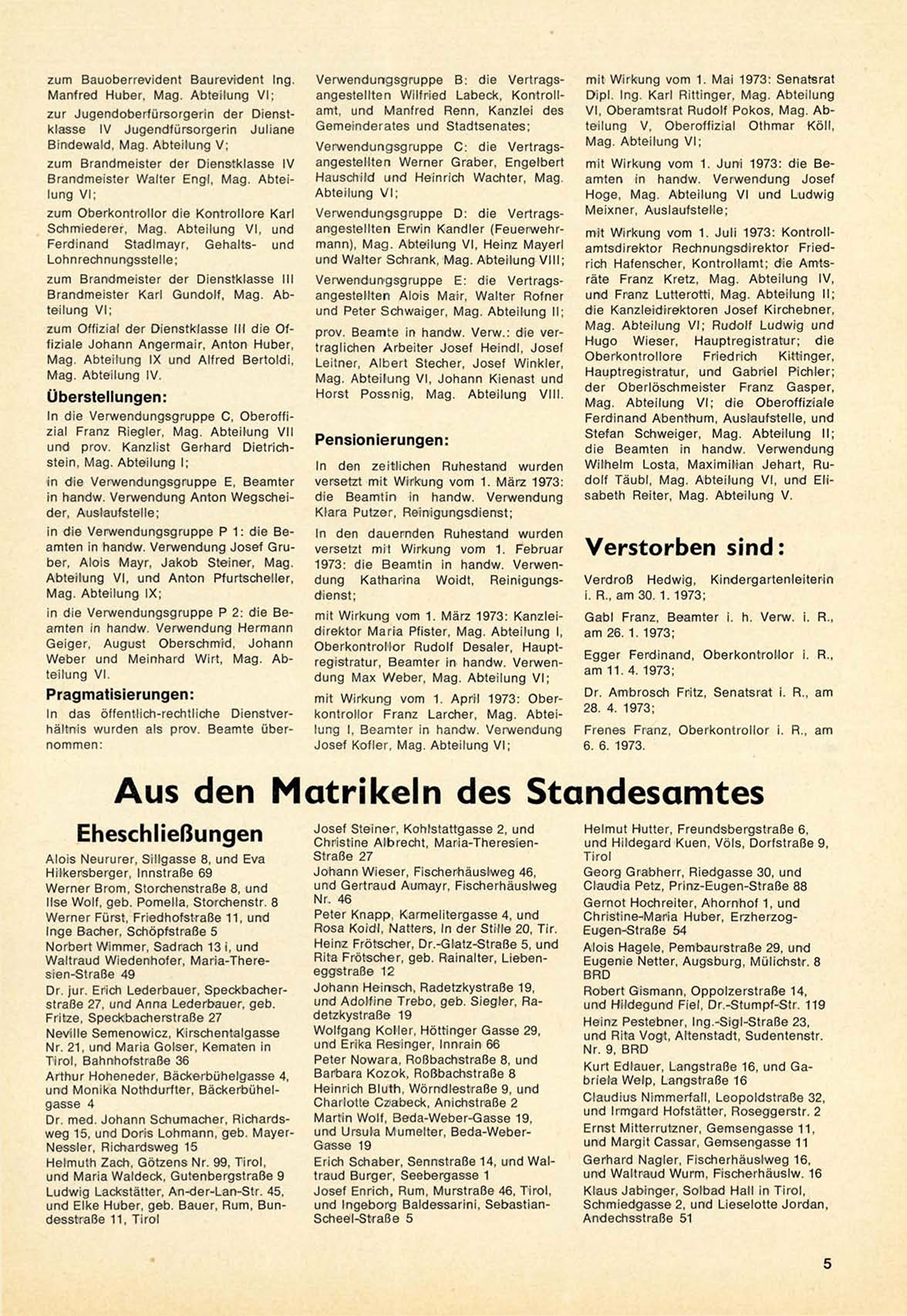 mit W i r k u n g v o m 1. J u l i 1973: K o n t r o l l amtsdirektor Rechnungsdirektor Friedrich H a f e n s c h e r , K o n t r o l l a m t ; die A m t s räte F r a n z Kretz, M a g . A b t e i l u n g IV,