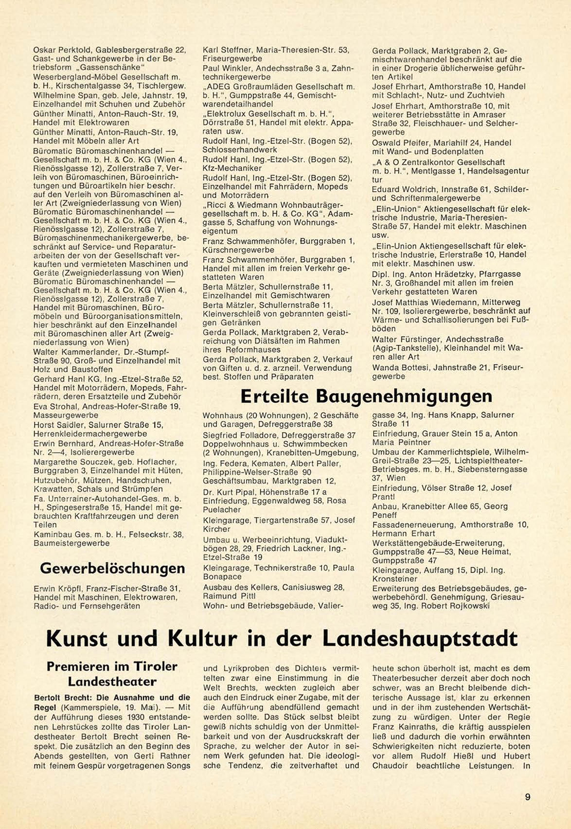 der A u f f ü h r u n g d i e s e s 1930 e n t s t a n d e nen Lehrstückes zollte d a s T i r o l e r L a n destheater Bertolt Brecht s e i n e n R e spekt. Die zusätzlich an den B e g i n n d e s