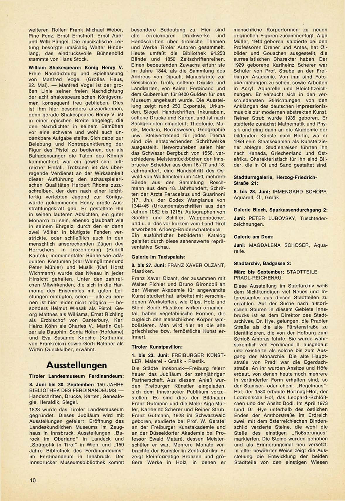 1. bis 23. Juni: F R E I B U R G E R KÜNSTL E R . M a l e r e i - Grafik - Plastik.