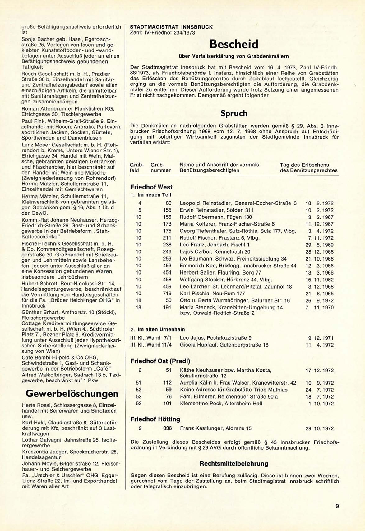 Der Stadtmagistrat Innsbruck hat mit B e s c h e i d v o m 16. 4. 1973, Z a h l I V - F r i e d h .