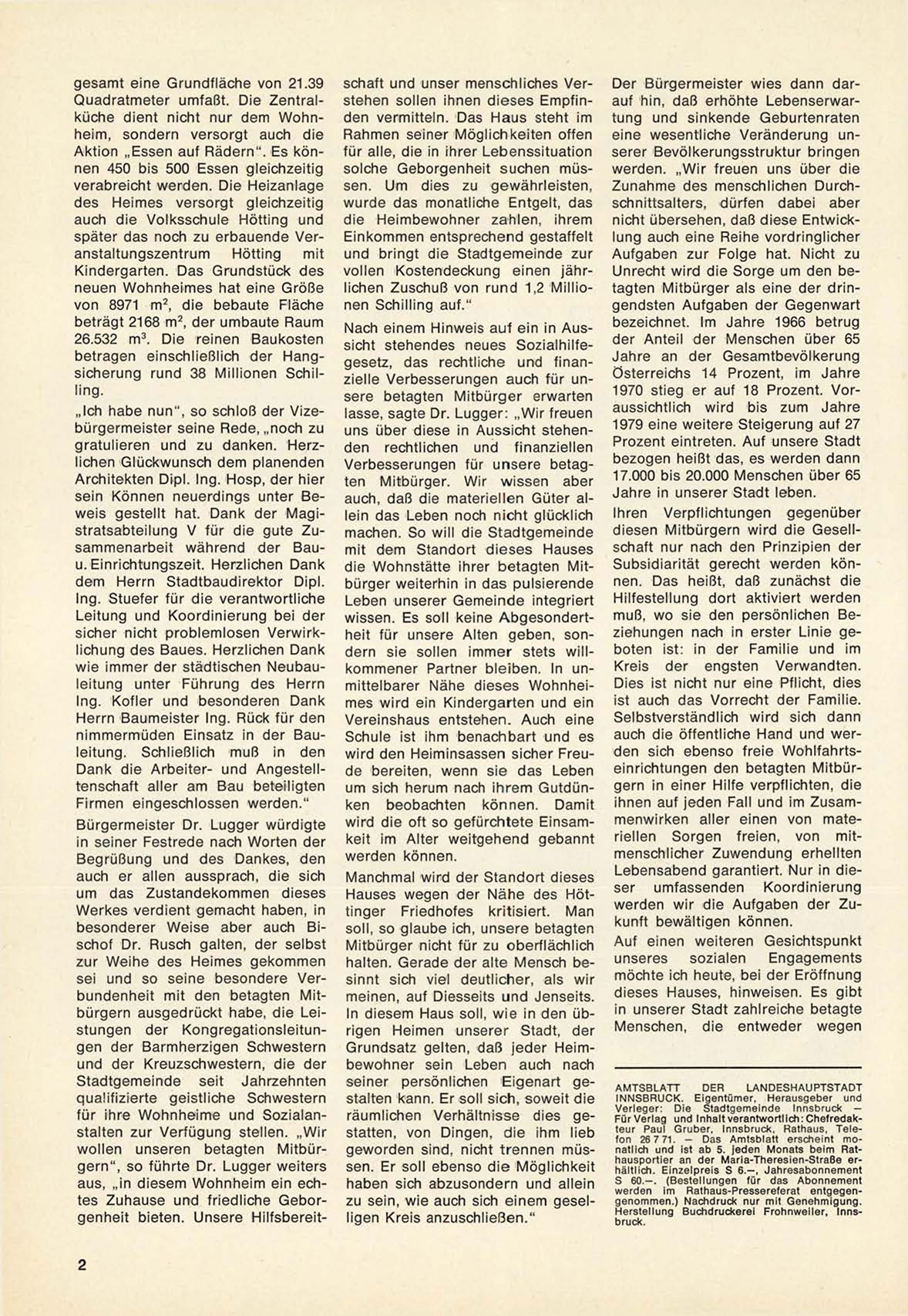 F ü r V e r l a g und l n h a l t v e r a n t w o r t l i c h : C h e f r e d a k teur Paul G r u b e r , Innsbruck, Rathaus, T e l e fon 26 7 71. Das Amtsblatt erscheint monatlich und ist ab 5. jeden Monats beim Rathausportier an der Maria-Theresien-Straße erhältlich. E i n z e l p r e i s S 6.—, J a h r e s a b o n n e m e n t