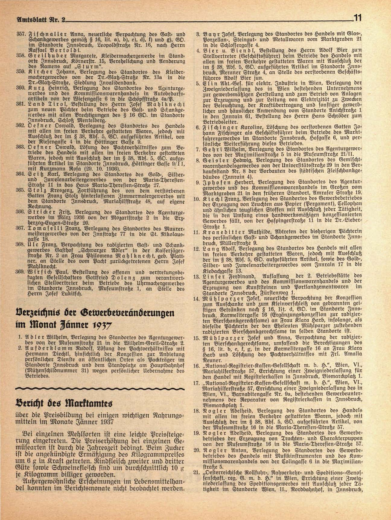 im § 38, Abs. 5, GO. aufgeführten Artikel im Standorte Innsbruck, Meraner Straße 4, an Stelle des verstorbenen Geschäftsführers Adolf Bier jun.