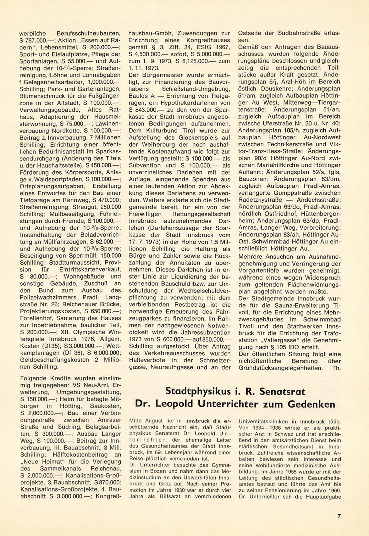 Rathaus, A d a p t i e r u n g der H a u s m e i s t e r w o h n u n g , S 75.000.—; L a w i n e n verbauung Nordkette, S 100.000.—;