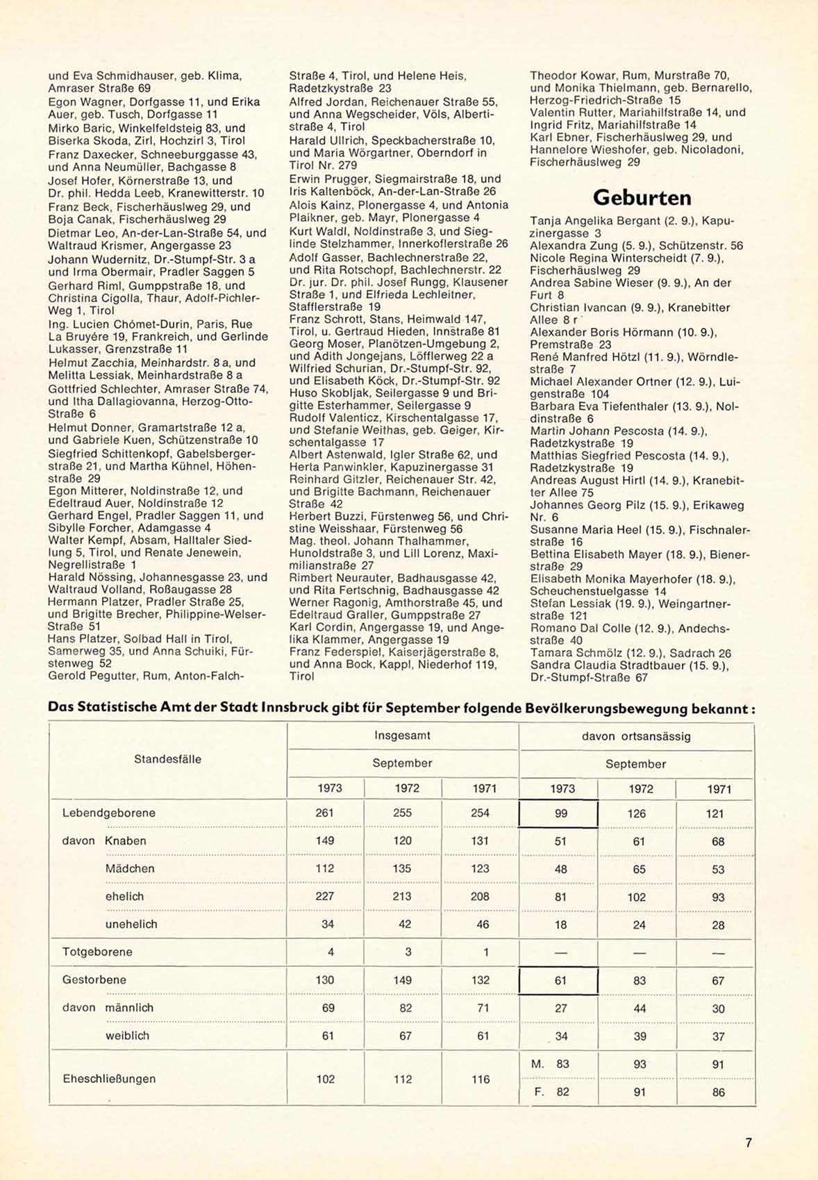 Das Statistische Amt der Stadt Innsbruck gibt für September folgende Bevölkerungsbewegung bekannt