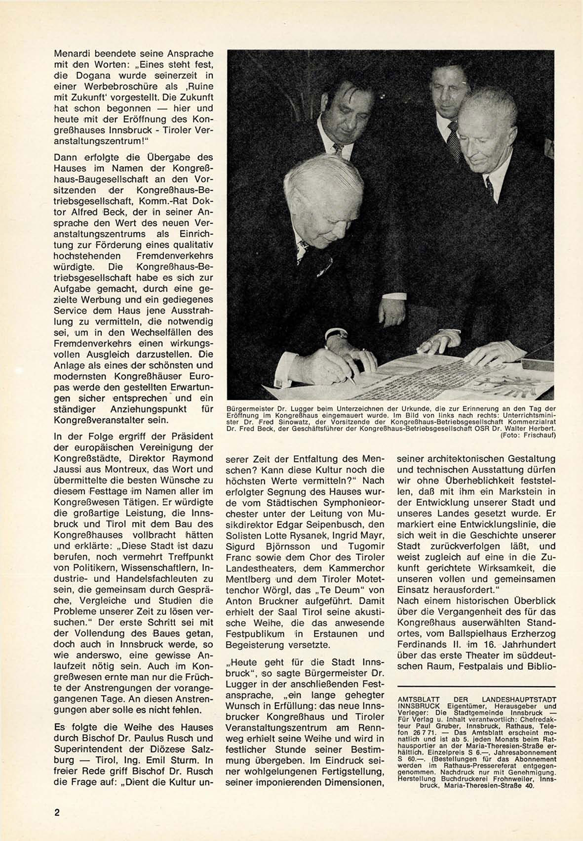 heute mit d e r Eröffnung des K o n greßhauses Innsbruck - Tiroler V e r a n s t a l t u n g s z e n t r u m !"