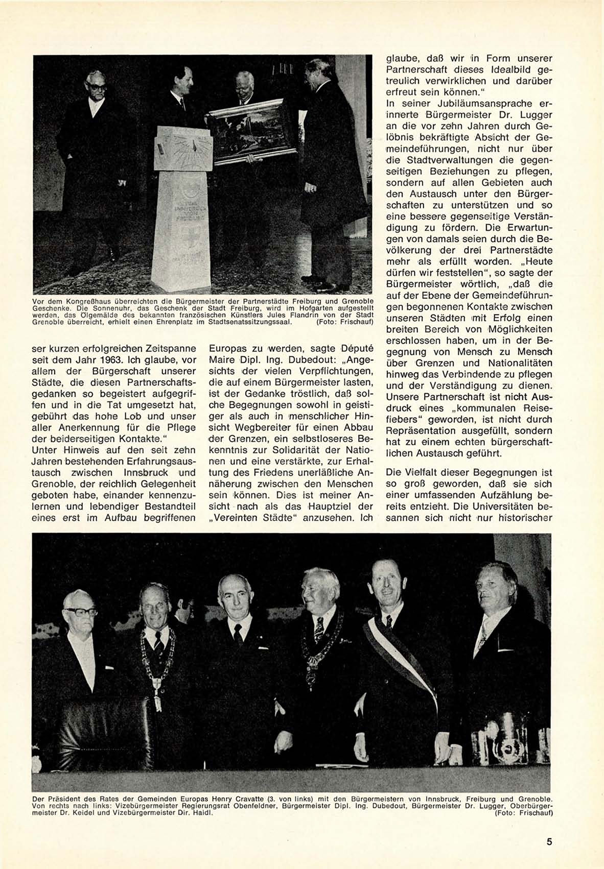 Der Präsident des Rates der G e m e i n d e n E u r o p a s Henry Cravatte (3. von links) mit den Bürgermeistern von Innsbruck, F r e i b u r g und G r e n o b l e .
