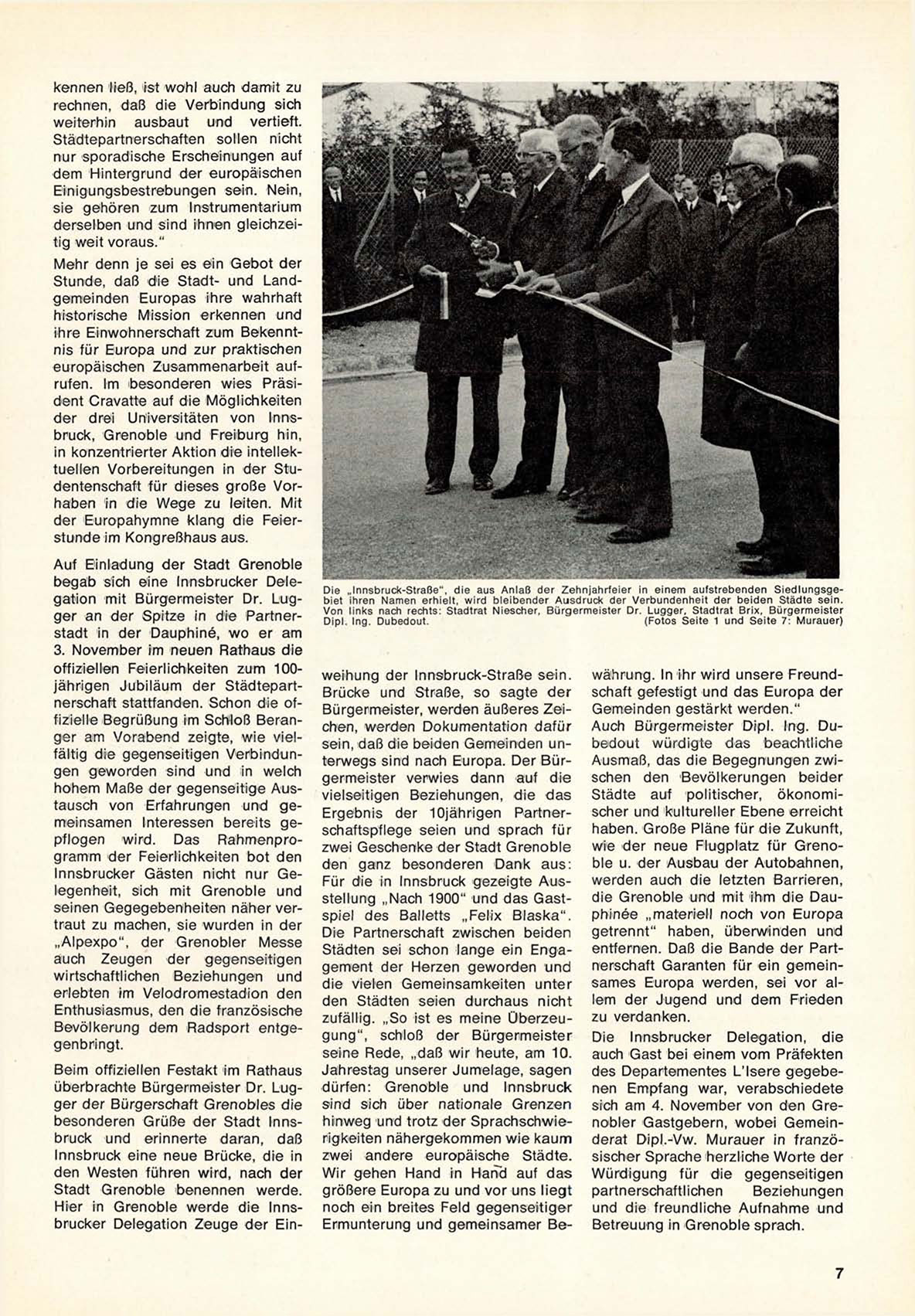 b e g a b sich eine Inns brucker Delegation mit Bürgermeister Dr. L u g g e r an der S p i t z e in die Partnerstadt in der Dauphiné, w o er am