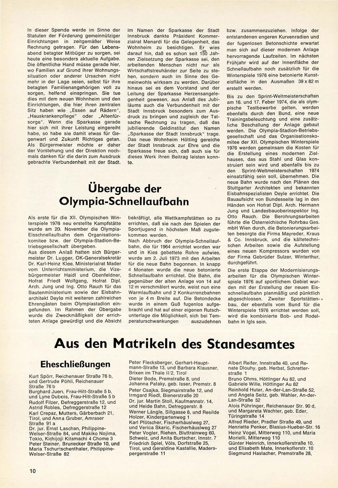 Die erste E t a p p e d e r M o d e r n i s i e r u n g s arbeiten f ü r die O l y m p i s c h e n Winters p i e l e 1976 auf sportlichem G e b i e t wurden mit d e r E r s t e l l u n g der neuen E i s s c h n e l l a u f b a h n planmäßig und pünktlich