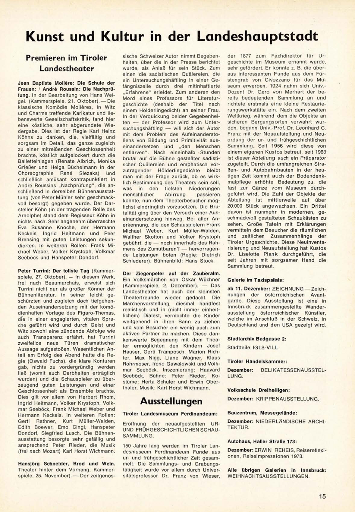 Dezember: E R W I N R E H E I S , R e i s e r e f l e x i o n e n , R e i s e i m p r e s s i o n e n 1973.