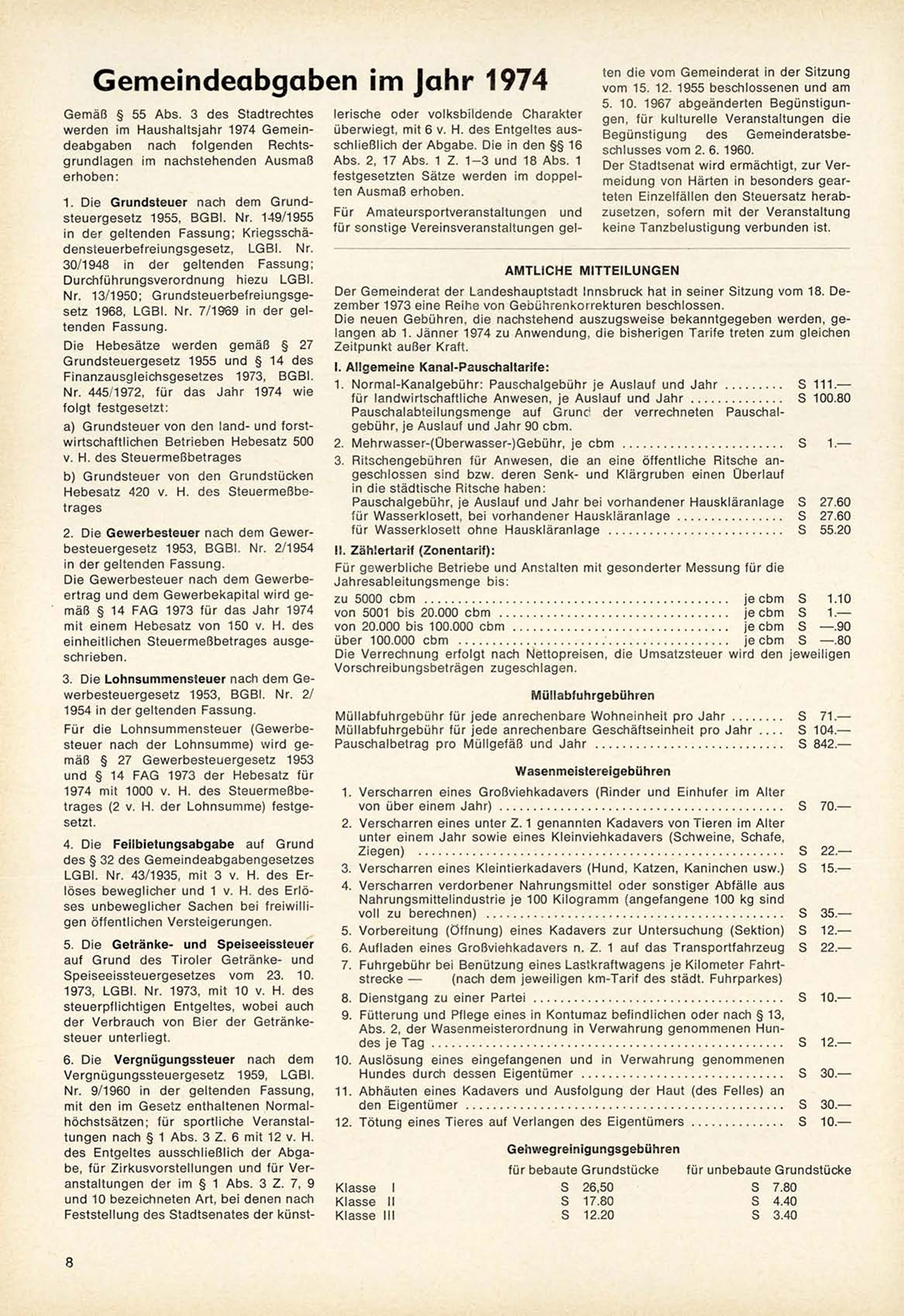 Der G e m e i n d e r a t der L a n d e s h a u p t s t a d t Innsbruck hat in s e i n e r Sitzung vom 18. D e z e m b e r 1973 eine R e i h e von G e b ü h r e n k o r r e k t u r e n b e s c h l o s s e n .