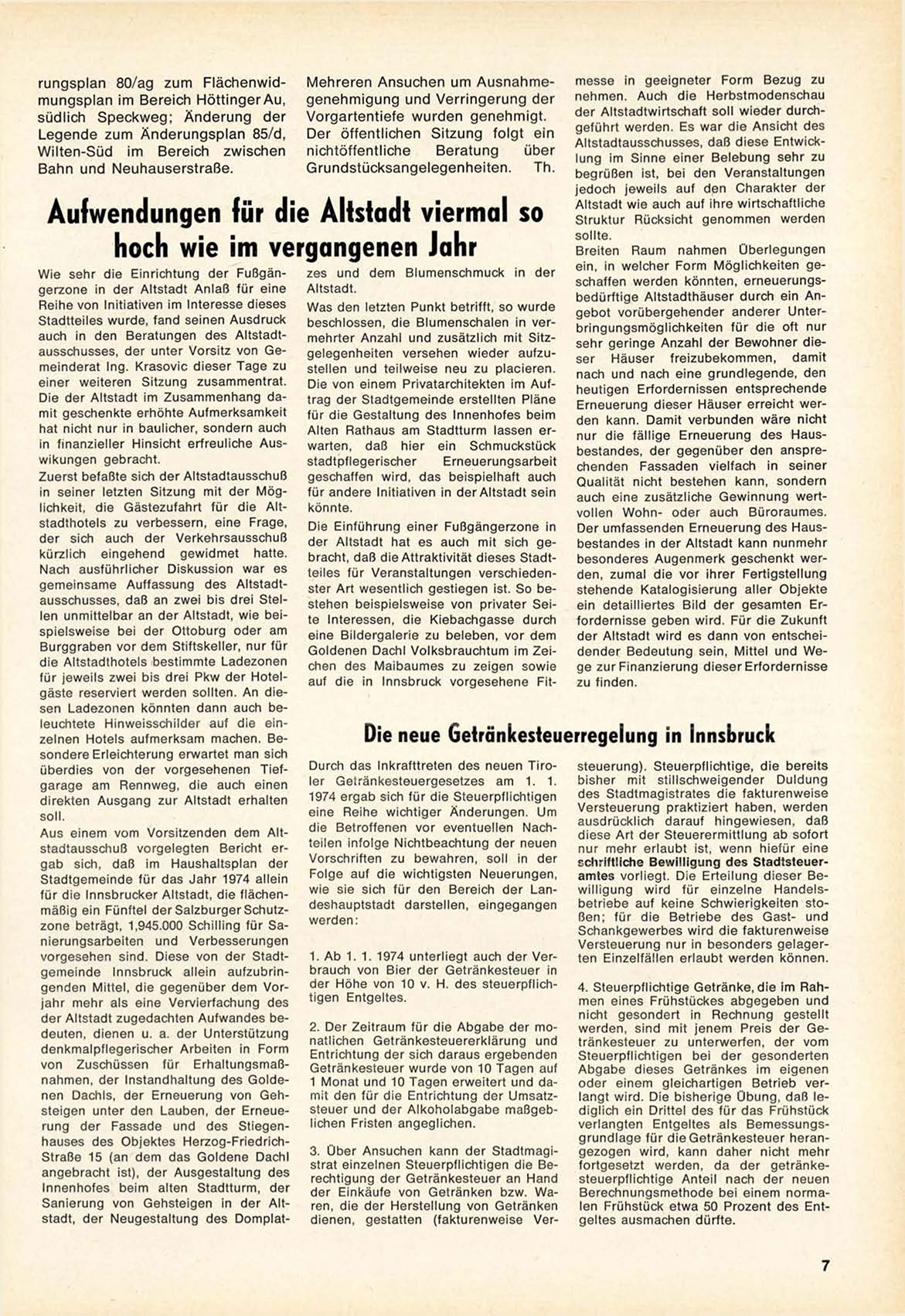1. A b 1. 1. 1974 unterliegt auch der V e r brauch von B i e r der Getränkesteuer in