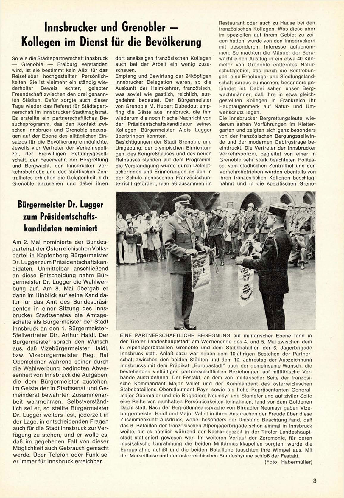 E s erstellte e i n partnerschaftliches B e suchsprogramm, das den Kontakt zwischen Innsbruck u n d G r e n o b l e s o z u s a gen auf d e r E b e n e d e s alltäglichen E i n s a t z e s für die B e v ö l k e r u n g e r m ö g l i c h t e .