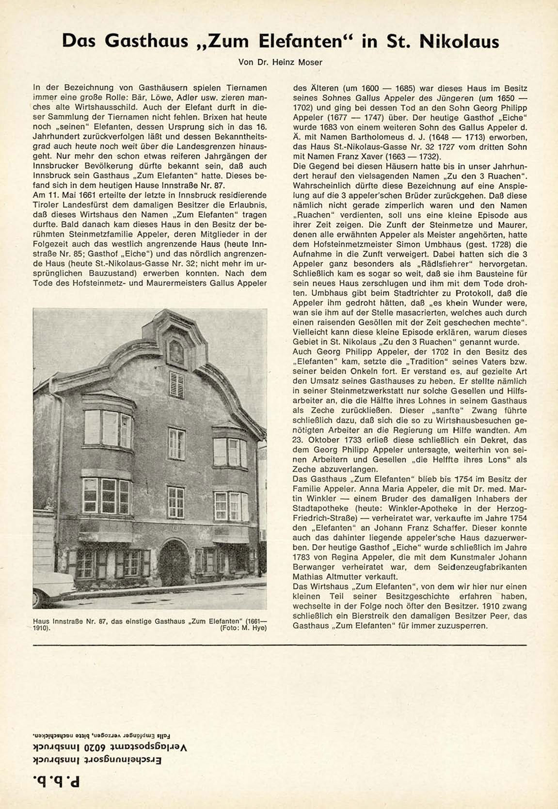 Innsbruck s e i n G a s t h a u s „ Z u m E l e f a n t e n " hatte. D i e s e s bef a n d sich in d e m heutigen H a u s e Innstraße Nr. 87.