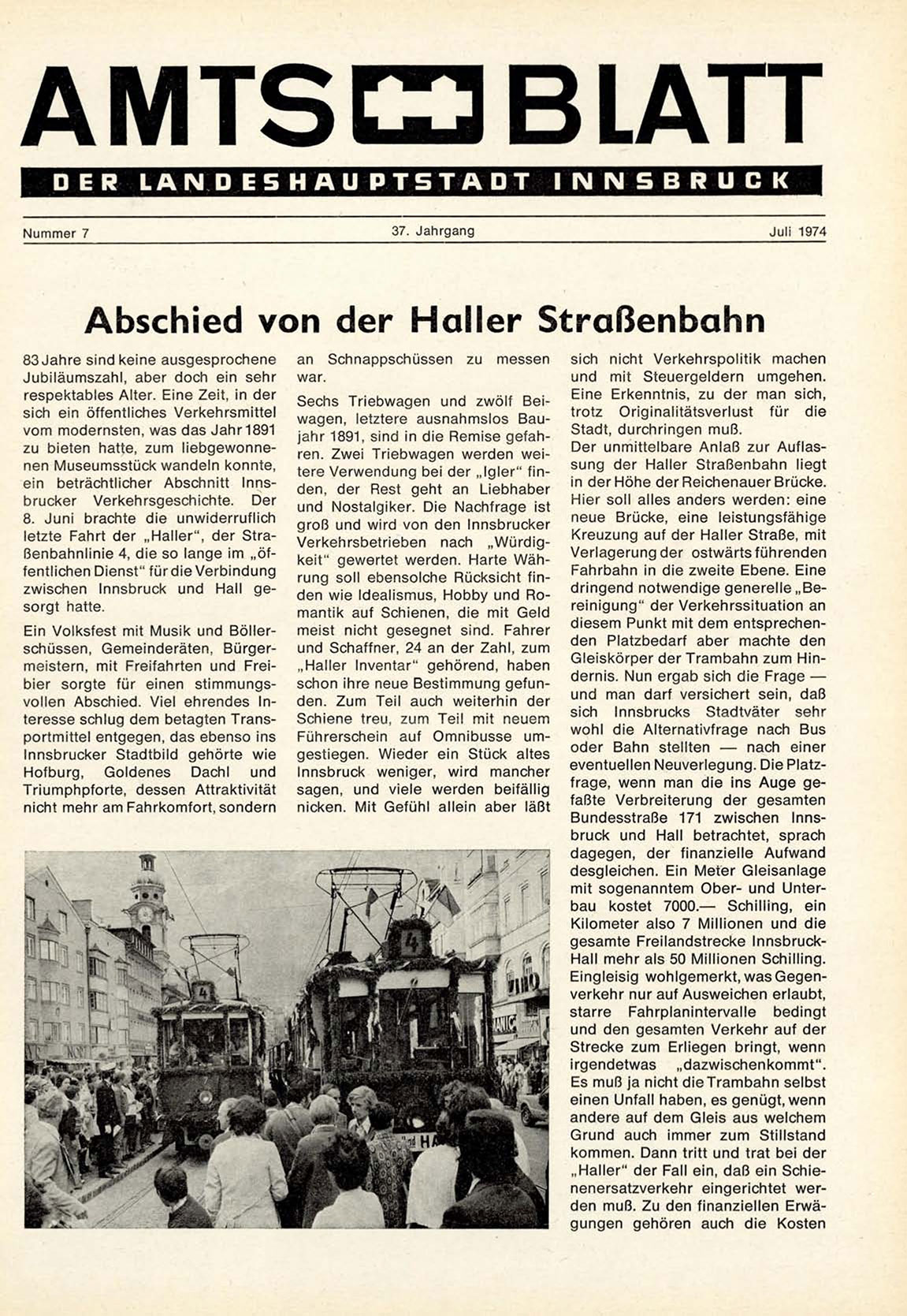 letzte Fahrt der „ H a l l e r " , der S t r a ßenbahnlinie 4, die so lange im „öffentlichen Dienst" f ü r d i e V e r b i n d u n g